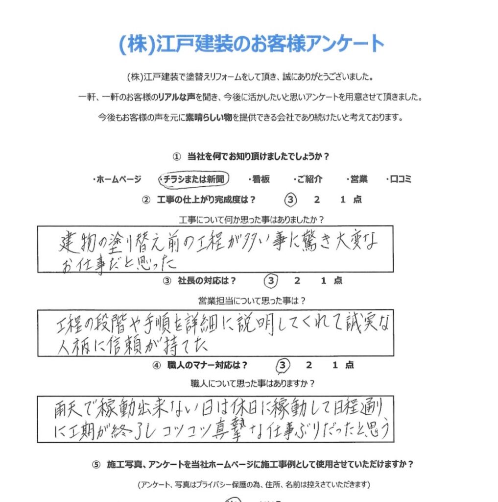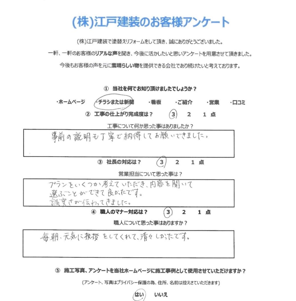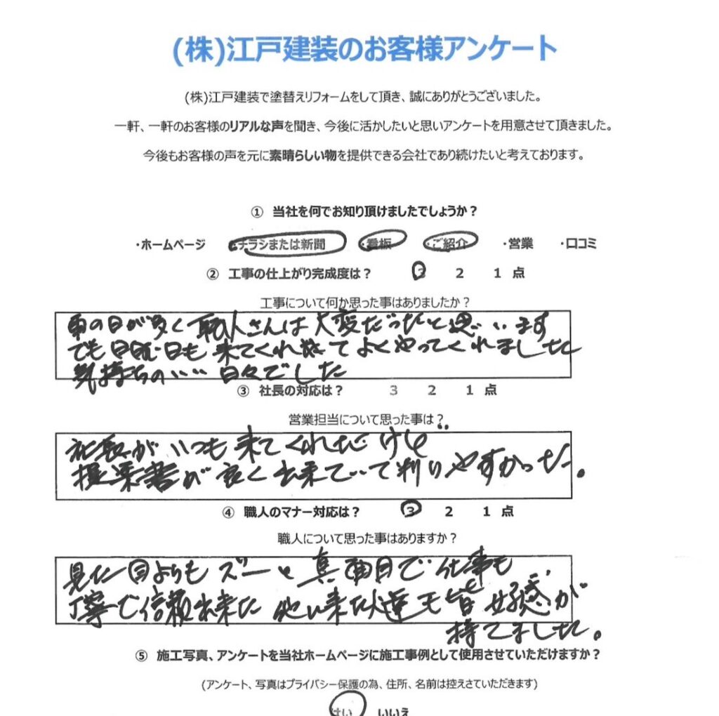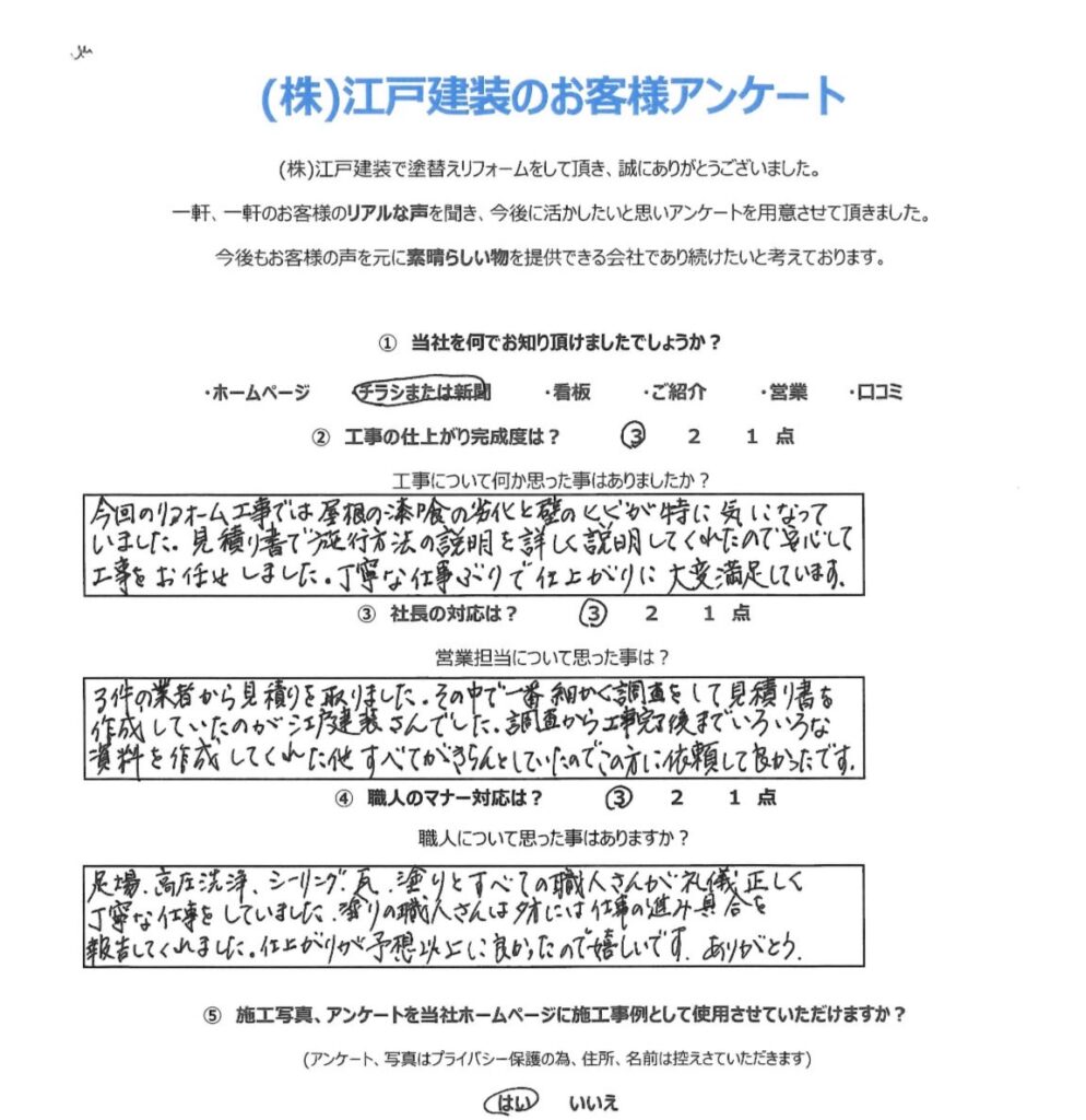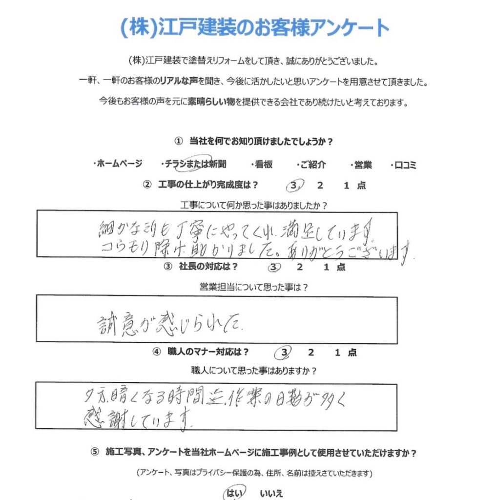 当社では、毎年1回ごとの定期点検を実施しております。 当社では施工が終わった時点から、施主様と当社との本当のお付き合いが始まると思っております。どうぞ末永いお付き合いをお願い申し上げます。