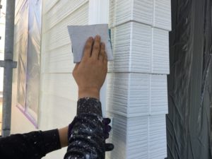 下地調整|鉄部、塩ビ部分はすべてペーパーヤスリで手作業