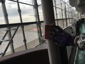 下地調整|鉄部、塩ビ部分はすべてペーパーヤスリで手作業
