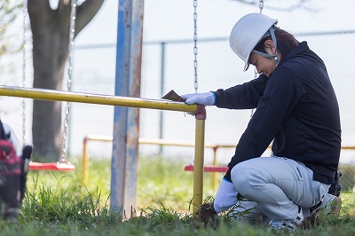 完成した遊具で遊ぶ子供たちを想像すると作業員も自然と笑みがこぼれます。