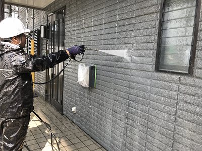 今回は吹付というやりかたで外壁を塗装していきます。