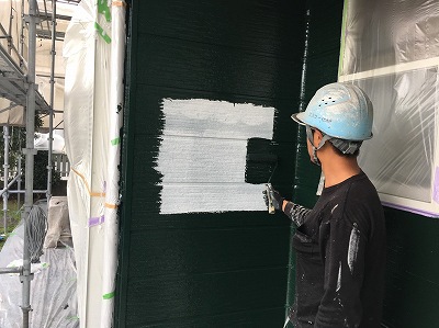下塗り、中塗り、上塗りの三回に分けて外壁を塗っていきます。