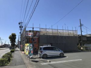 今週から、店舗の外壁塗装工事が始まりました。